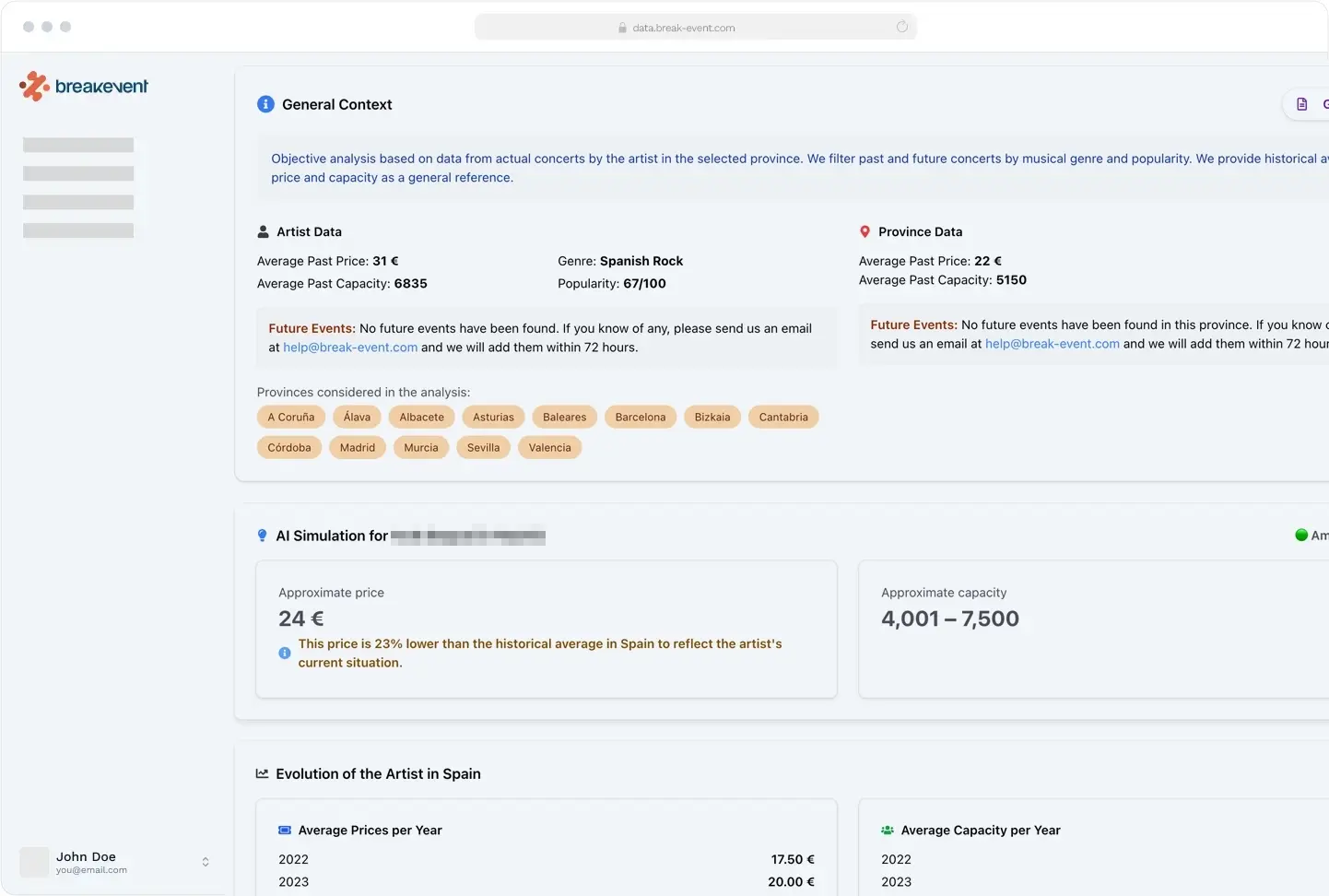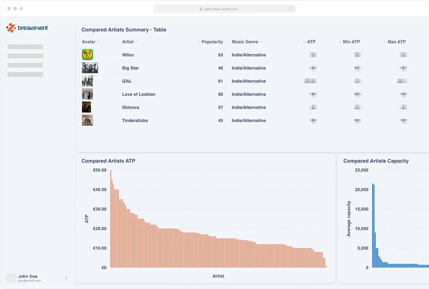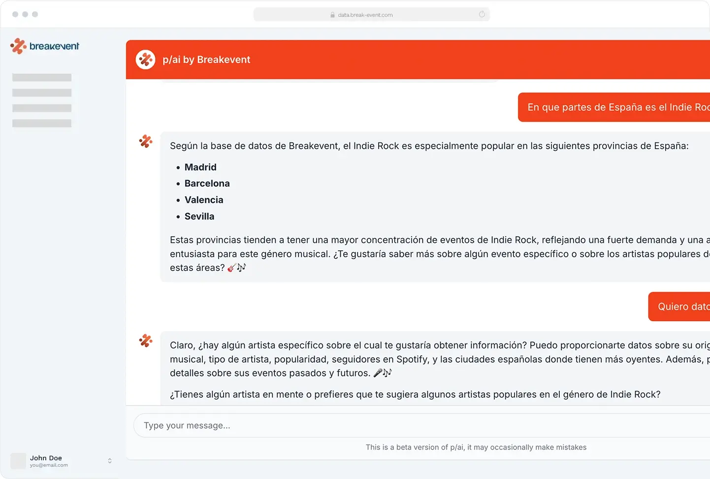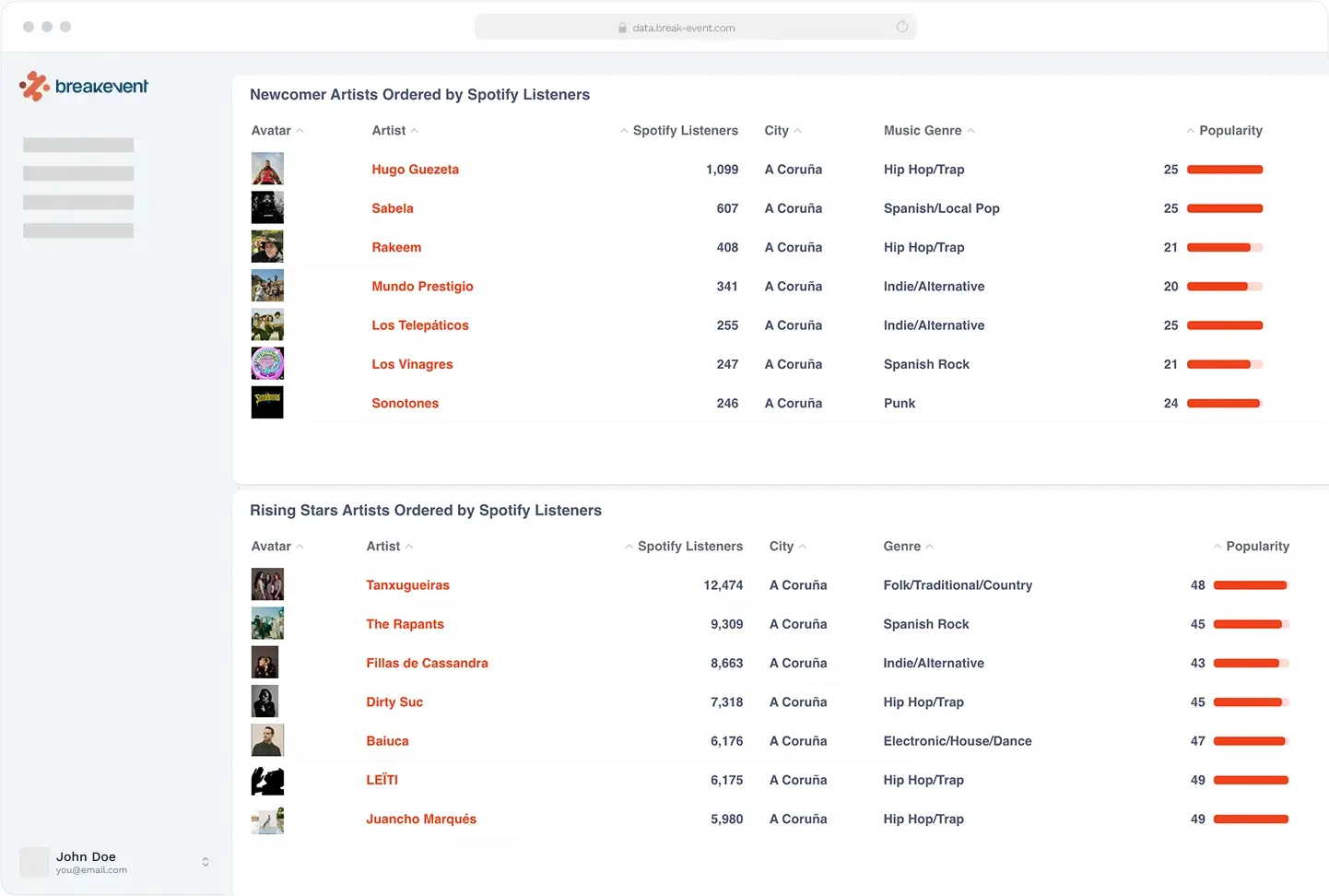 Breakevent's platform is the only one specialized in live music. And this differentiates them in that they do not analyze the trends of the artists, but rather that the fans are willing to go to the concert.